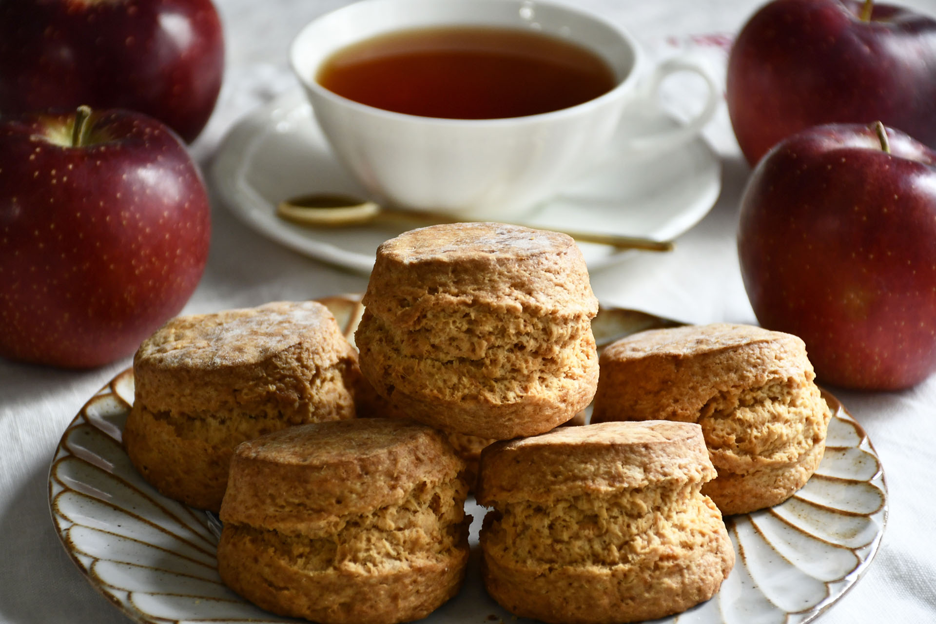 甘酸っぱくてジューシーな秋映(あきばえ)林檎のスコーンができました。