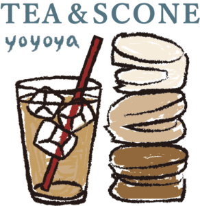 葉々屋ではミルクジェラートに濃厚アツアツな紅茶をかけて、ローストしてキャラメリゼしたナッツ(アーモンド、ピーナッツ)をパラりとふりかけ、ポット型のビスケットスコーンをのせてさらに煮詰めた紅茶シロップで仕上げています。
